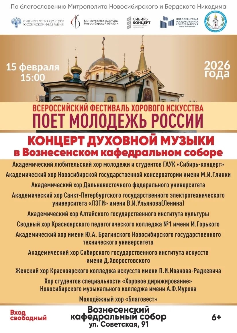 С 13 по 16 февраля 2026 года на концертных площадках города Новосибирска пройдет первый Всероссийский фестиваль академического хорового искусства «Поёт молодёжь России».