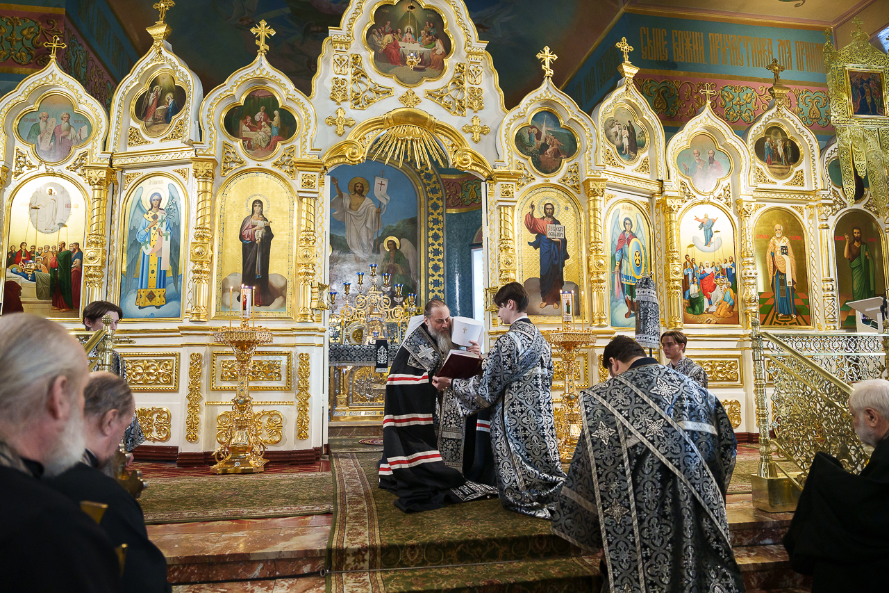 В конце вечерни была прочитана молитва св. Ефрема Сирина «Господи и Владыко живота моего». Митрополит Никодим прочитал молитвы на начало Великого поста и произнес проповедь. В своей проповеди, обращаясь к духовенству и прихожанам собора, владыка Никодим отметил, что чин прощения - то событие, которое готовит нас к прохождению поприща Святой Четыредесятницы.