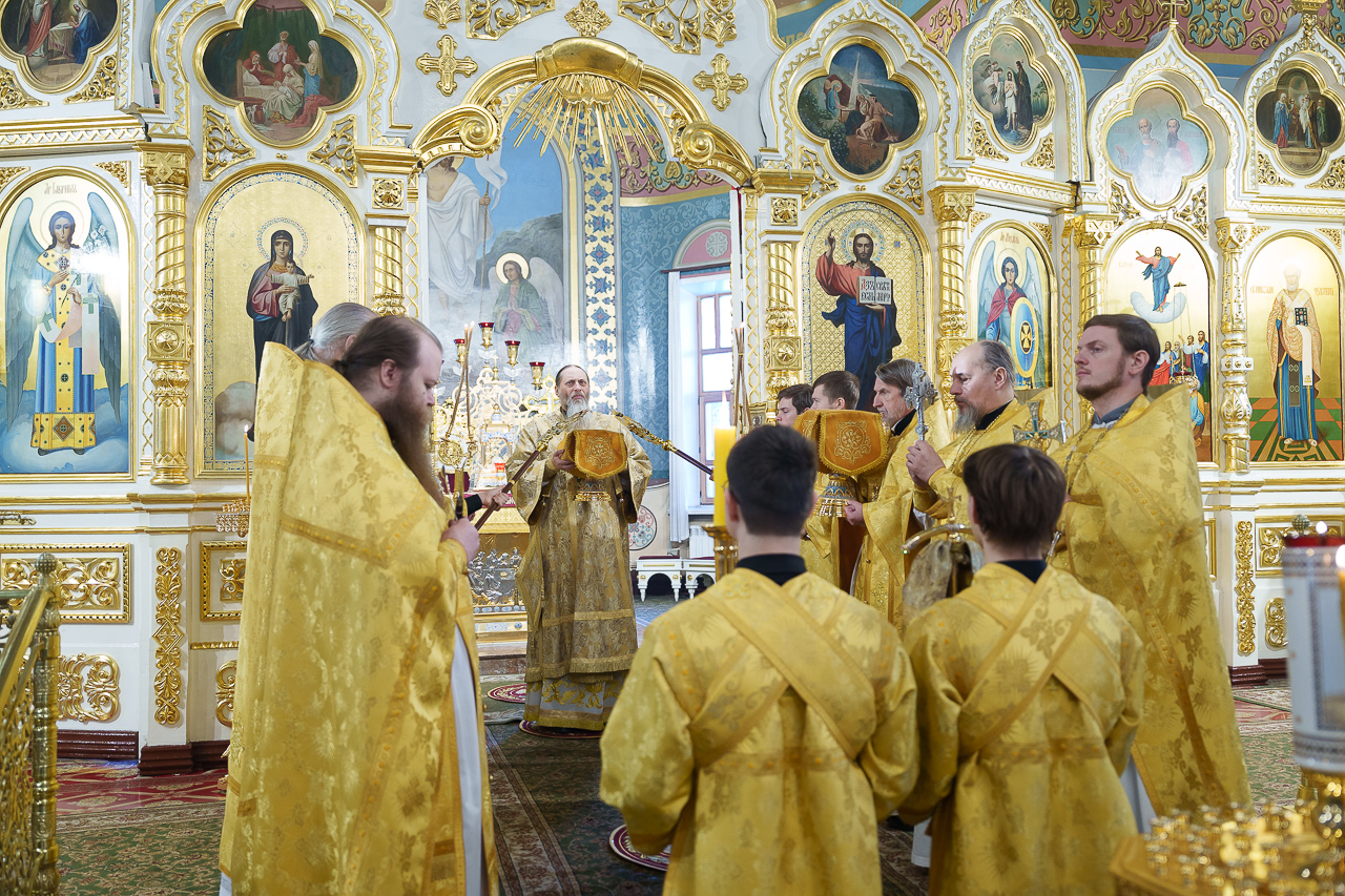 Раннюю Божественную литургию в Вознесенском кафедральном соборе совершил протоиерей Борис Свинин в сослужении иерея Андрея Андреевского, диакона Андрея Медведева.