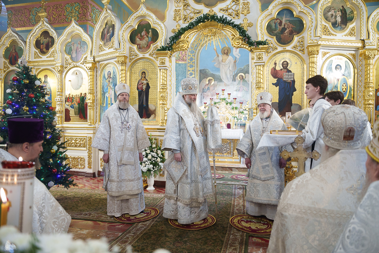 8 января, в праздник Собора Пресвятой Богородицы и день памяти преподобного Никодима Тисманского, Божественную литургию в Вознесенском кафедральном соборе совершил митрополит Новосибирский и Бердский Никодим.