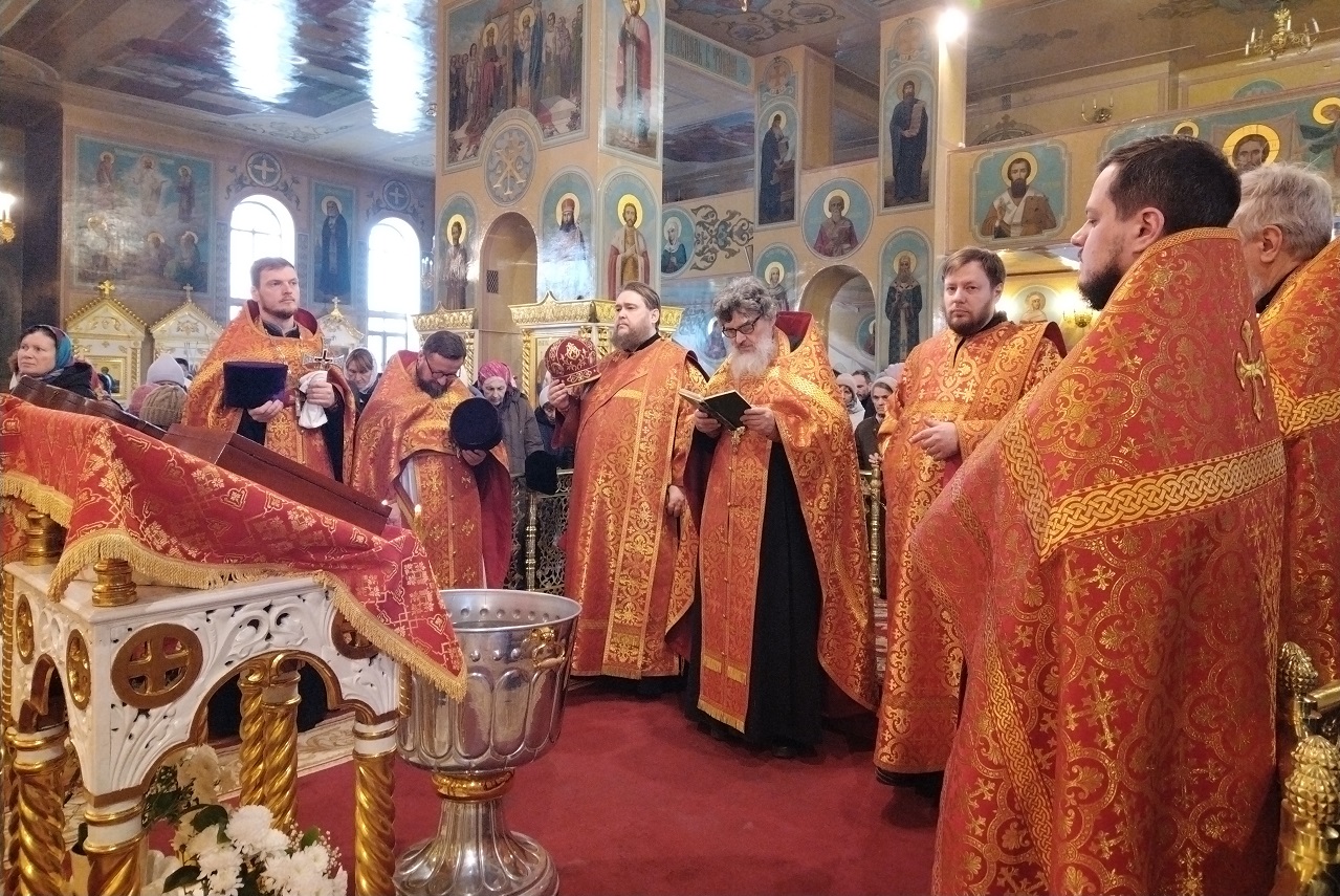 Божественную литургию в кафедральном соборе совершил протоиерей Димитрий Сальников в сослужении диакона Андрея Полкового.