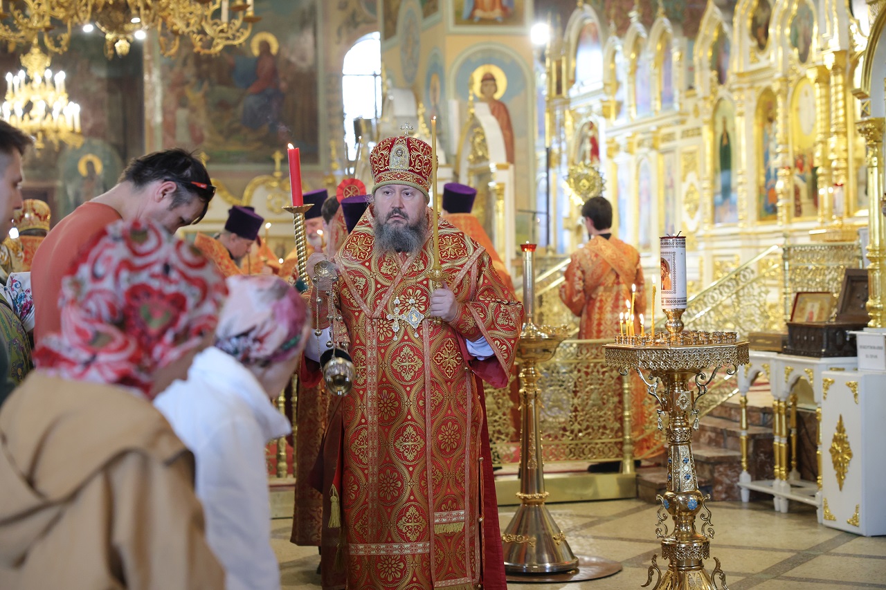 Вечером 25 апреля, накануне воскресного дня, владыка Варфоломей совершил всенощное бдение в Вознесенском кафедральном соборе.